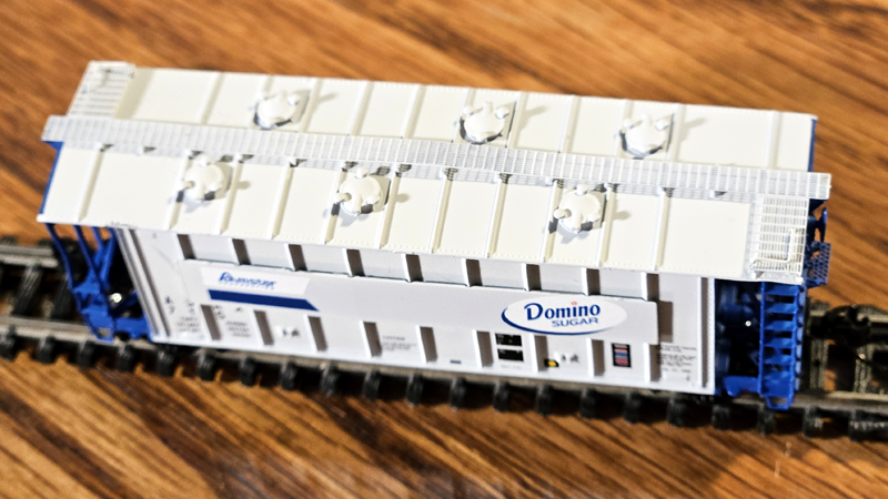 1:160 N scale Athern 40 ft airslide hopper. Domino Sugar 9 mm gauge. Magne-Matic knuckle couplers. As new. Used as a prototype for TraiNscale Relax project. |