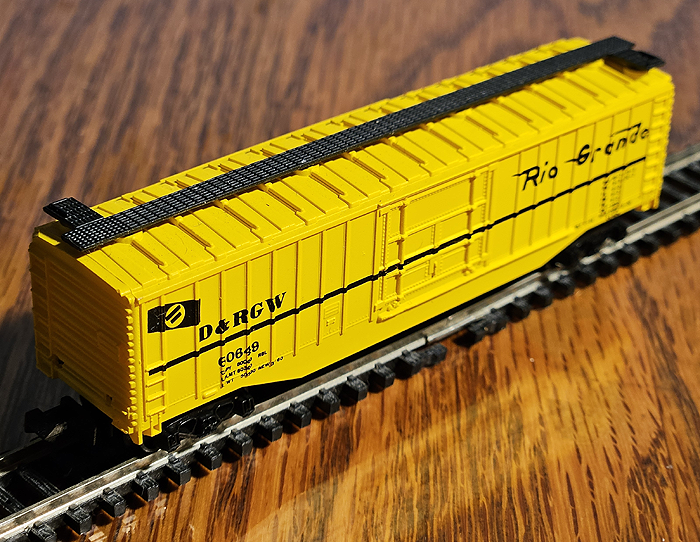 ![]() 1:160 N scale 46 ft fish-belly box car. Denver and Rio Grande Western Railway 9 mm gauge. Rapido hook couplers. Used . No original box. Used as a prototype for TraiNscale Relax project. |