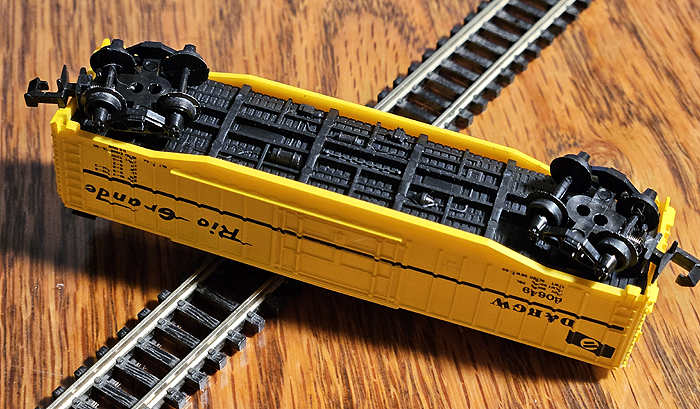1:160 N scale 46 ft fish-belly box car. Denver and Rio Grande Western Railway 9 mm gauge. Rapido hook couplers. Used. No original box. Used as a prototype for TraiNscale Relax project. |