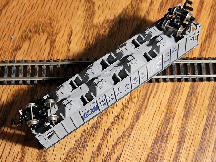 1:160 N scale MinitrainS 58 ft 4 bay hopper. Naugatuck Plastics 9 mm gauge. Rapido hook couplers. Used. Used as a prototype for TraiNscale Relax project |