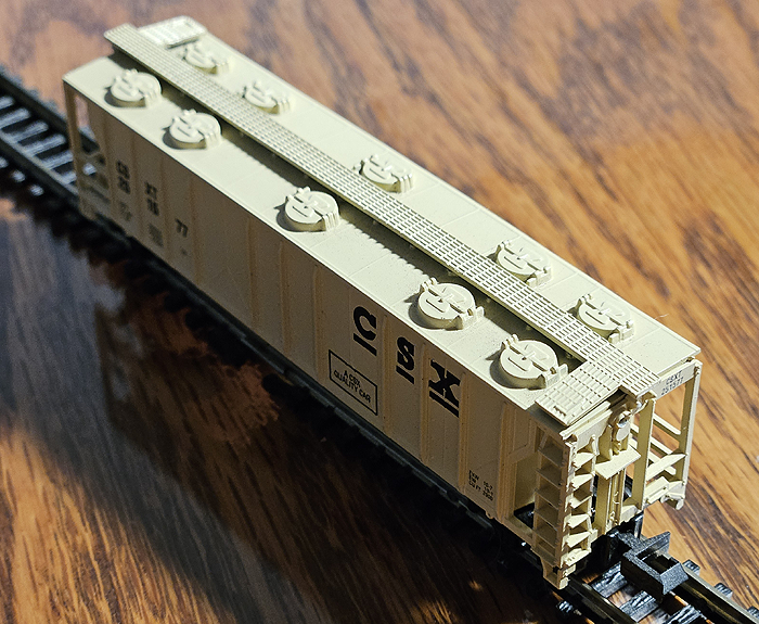 1:160 N scale Special Edition Railroad Models 45ft 3 bay hopper. CSX 9 mm gauge. Rapido hook couplers. As new. Used as a prototype for TraiNscale Relax project |