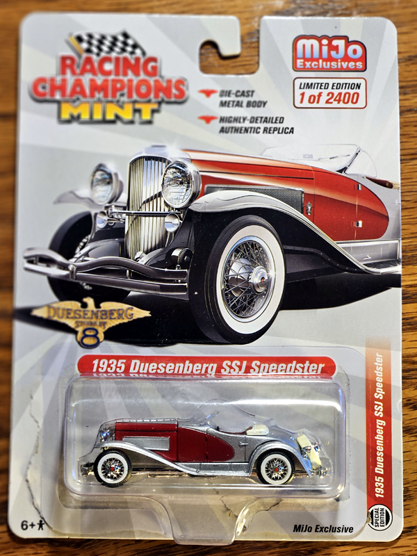 1:64 scale MiJo Exclusives 1935 Duesenberg SSJ Speedster Used. The packaging is torn. Used as a prototype for TraiNscale Relax project. |